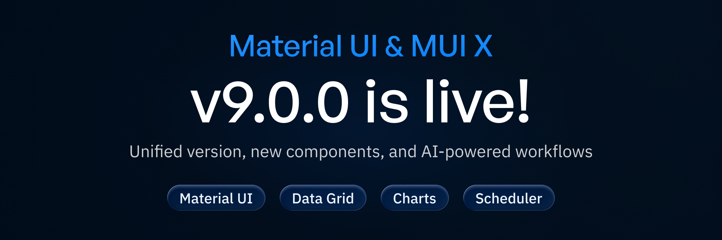 We are thrilled to announce the simultaneous release of Material UI v9 and of each MUI X v9 components.